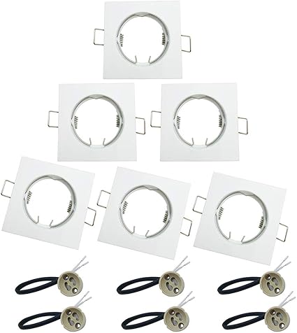 Bluexp 6 Pezzi Gu10 Luci Da Iincasso Quadrati Gu10 Faretti Trim Rings Orientabile Con Gu10 Ceramica Luce Holder Per Faretto Gu10 E Mr16 Foro Di Incasso 75mm Bianco Illuminazione Illuminazione Per Interni