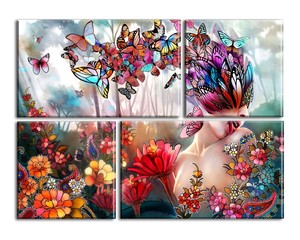 World Art Twas363x1 Donna Con Farfalle Dipinti Su Telaio Estetico 100 X 100 X 3 5 Cm Multicolore Dipinto A Mano Montato Su Telaio Estetico Alto Quadri Homelook