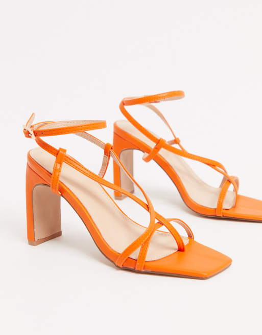 Pimkie Sandali Arancioni A Fascette Con Punta Quadrata E Tacco Fodesep