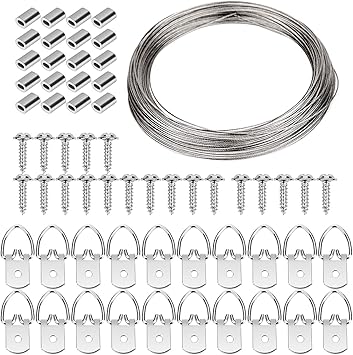 Ganci Da Appendere Per Quadri In Filo Metallico Da 30 M Kit Per Appendere Quadri Con Anelli A D Manicotto Per Crimpare Materiali Per Hobby Creativi Cornici