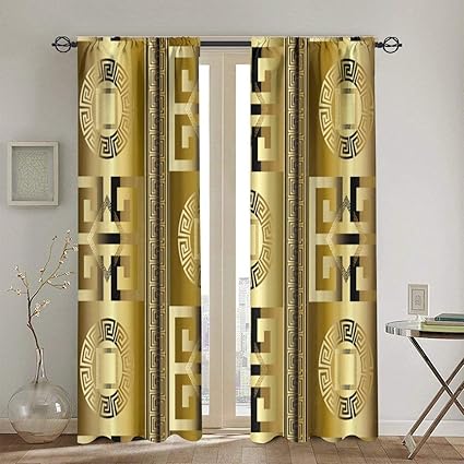 531 Set Di 2 Tende Per Finestre Geometriche Astratte Con Oro Antico 3d Vintage Greci Chiave Quadrati Cerchi Rombi Grecia 104in X72in 260cm X180cm Amazon It Casa E Cucina