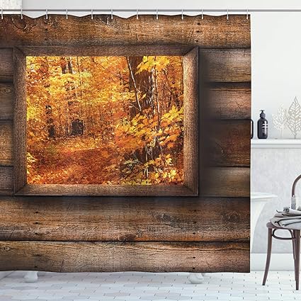 Edcott Finestre Quadrate In Legno Dal Cottage Foto Di Vita In Campagna Foglie D Autunno Tessuto Casa Facile Da Pulire Tende Da Doccia Per Bagno Tende Per Hotel Bagno Arancione Marrone Amazon It Casa