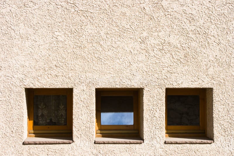 Tre Piccole Finestre Quadrate Sulla Parete Grigia Della Costruzione Immagine Stock Immagine Di Vecchio Decorazione 92171359
