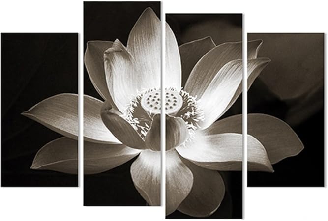 Good01 Quadro In 4 Pannelli Decorativo Motivo Fiore Di Loto Bianco E Nero Per La Casa O Un Salone Di Bellezza Amazon It Casa E Cucina