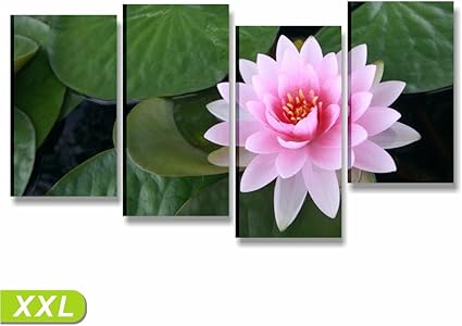Quadri L C Italia Fiore Di Loto Quadro Per Bagno Zen Camera Da Letto Con Fiori Rosa 152 X 78 Stampa Su Tela Da Parete Relax Multipannello 4 Pezzi Amazon It Casa E Cucina