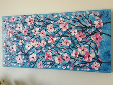 Quadro Moderno Astratto Dipinto A Mano Fiori Di Pesco Materico 40x80x4cm Rif47 Eur 200 00 Picclick It