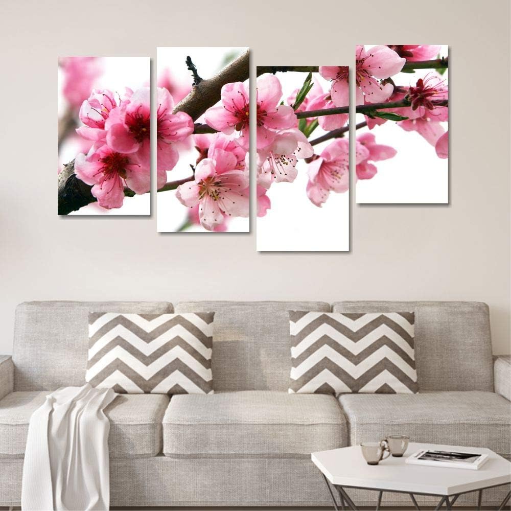 Quadri L C Italia Fiori Di Pesco Quadro Con Fiori Moderni Rosa Bianchi Per Soggiorno Camera Da Letto Cucina Ufficio 152 X 78 Stampa Su Tela Canvas Da Parete 4 Pezzi Grandi