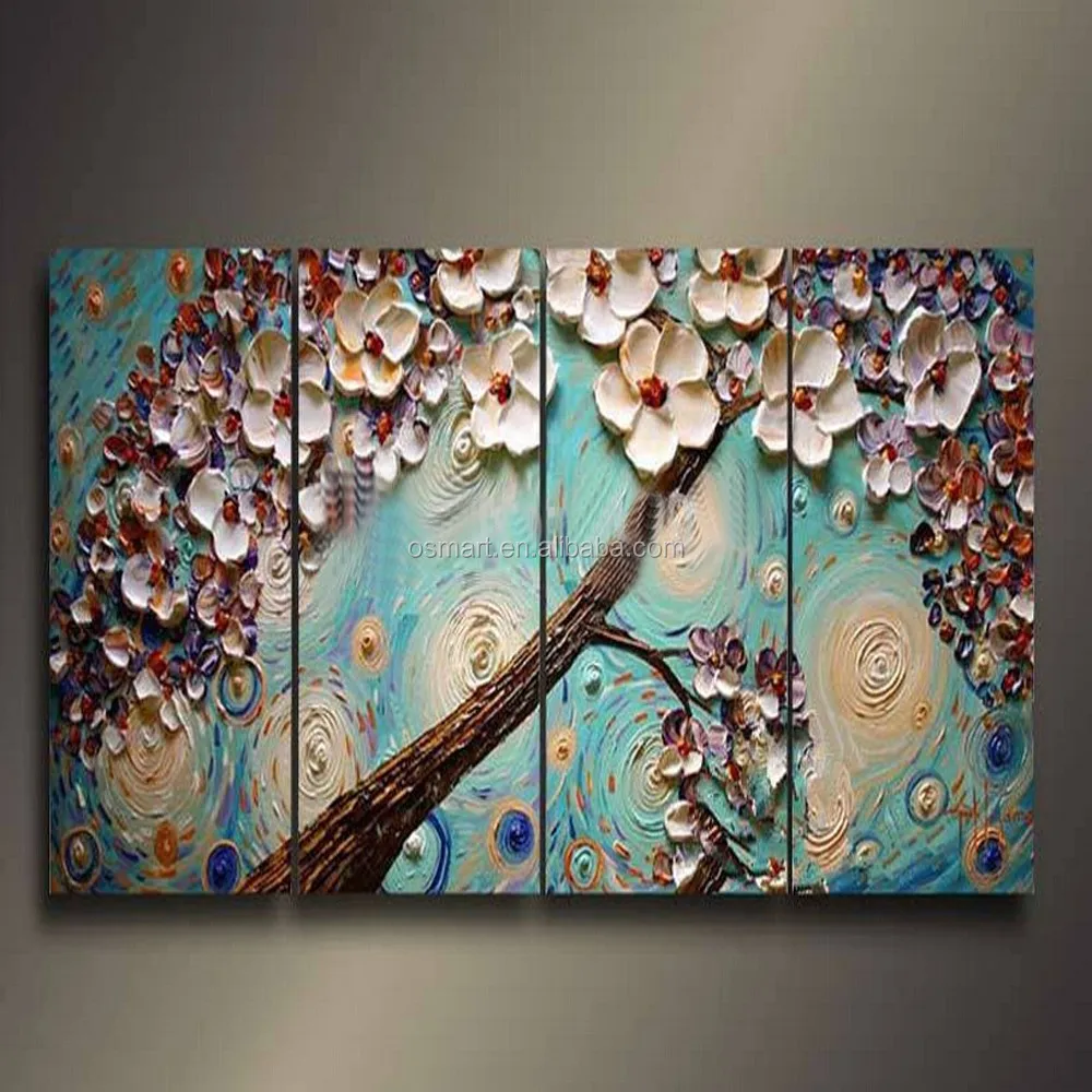 Quadro Moderno Astratto Dipinto A Mano Fiori Di Pesco Materico 40x80x4cm Rif47 Ebay