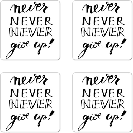 Citazione Sottobicchiere Set Di Quattro Never Give Up Frase Con Diversi Design Tipografico Filosofia Motivation Gloss Sottobicchieri Per Truciolato Quadrato Nero E Bianco Amazon It Casa E Cucina