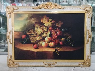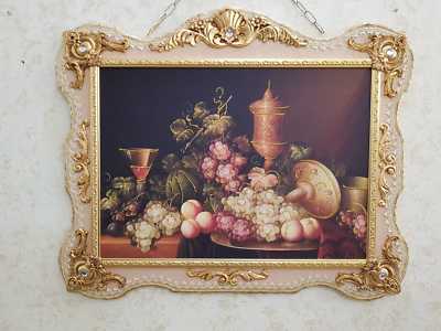 Quadro Con Frutta Cornice In Legno Panna E Foglia Oro Con Cristalli Ebay