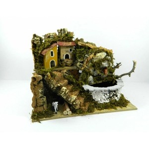Presepe In Sughero Con Luci E Cascata 30x40x50h Gambardella Pastori E Presepi