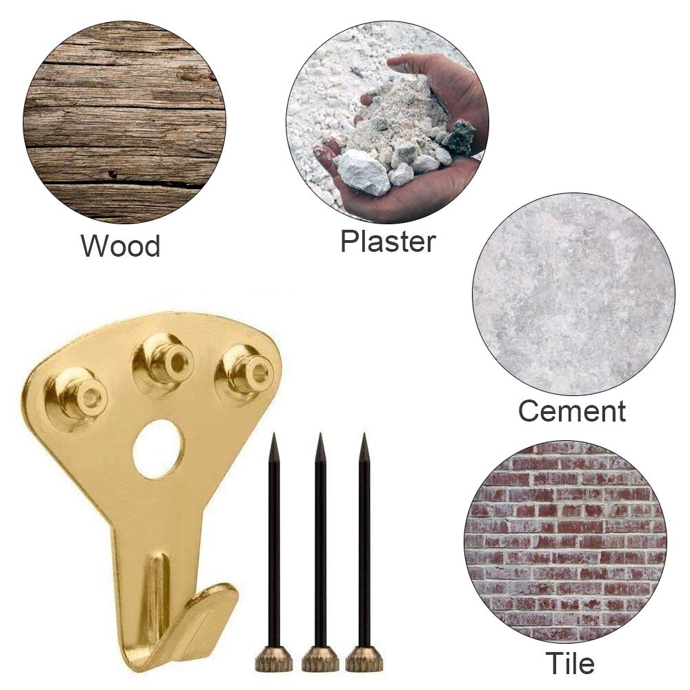 Laelr 130 Gancetti Per Quadri Versatili In Metallo Resistenti In Kit Completo Di Chiodini Capacita Di Carico 4 5 45 Kg Per Specchi Decorazioni Poster Pareti E Legno Color Oro