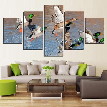 No Brand Quadri Su Tela Modulari Stampe Hd Immagini Su Pareti 5 Pezzi Anatre Germano Reale In Aumento Dall Acqua Pittura Soggiorno Decor Poster 30x40 30x60 30x80cm Senza Cornice Amazon It Casa E Cucina