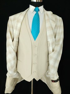 Giacca Da Smoking Beige Senza Risvolti A Quadri Di Lino Con Risvolti Crema Chf219 Sumissura