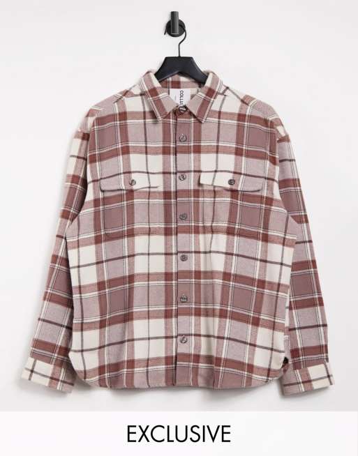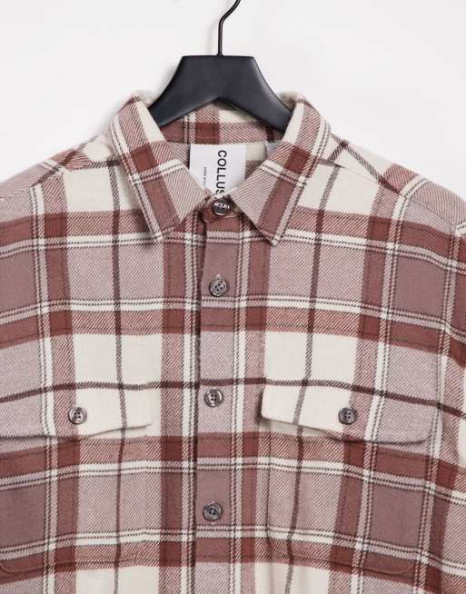 Collusion Unisex Camicia Giacca Oversize Beige A Quadri Asos