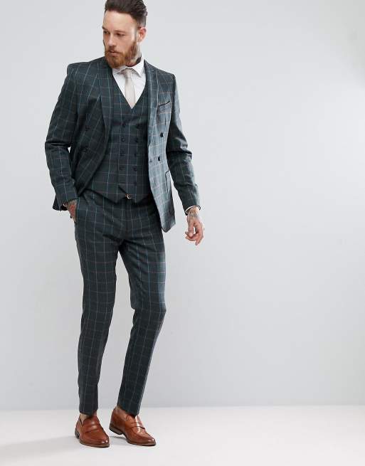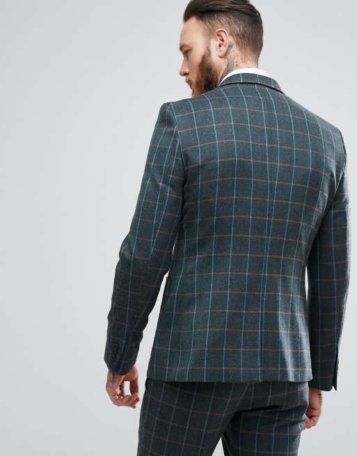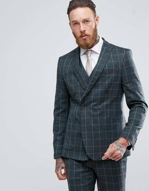 Asos Giacca Da Abito Doppiopetto Skinny Kaki A Quadri Country Asos