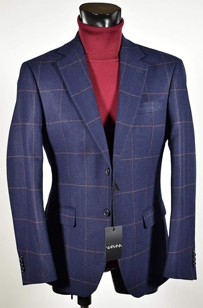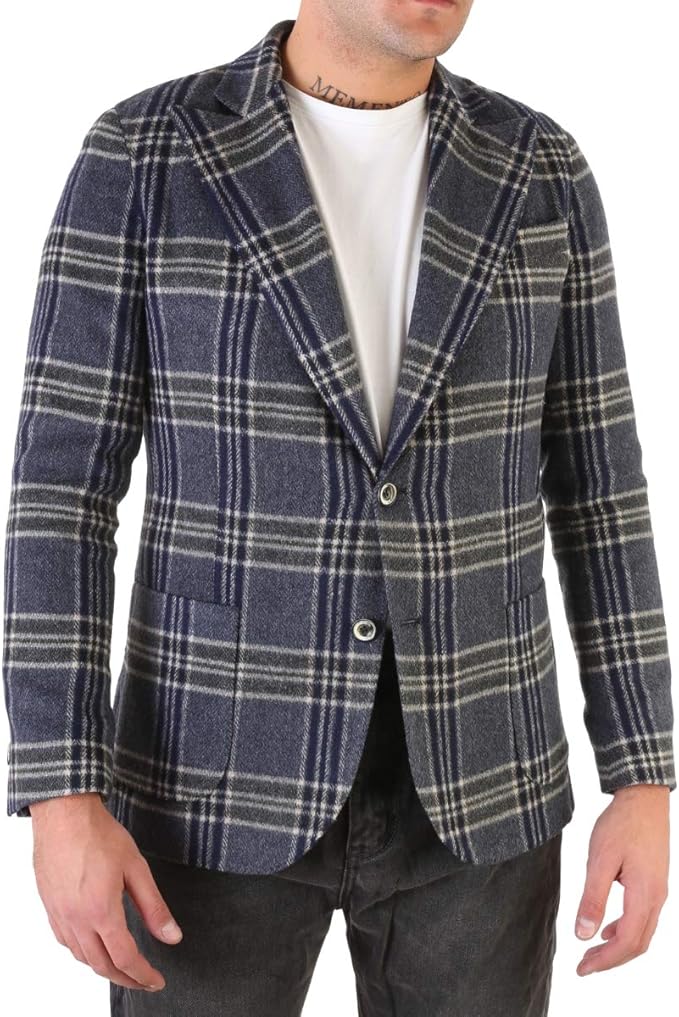 Giacca Blazer Uomo 2 Bottoni Lana Sfoderata Quadri Blu Made In Italy Antica Sartoria Napoletana