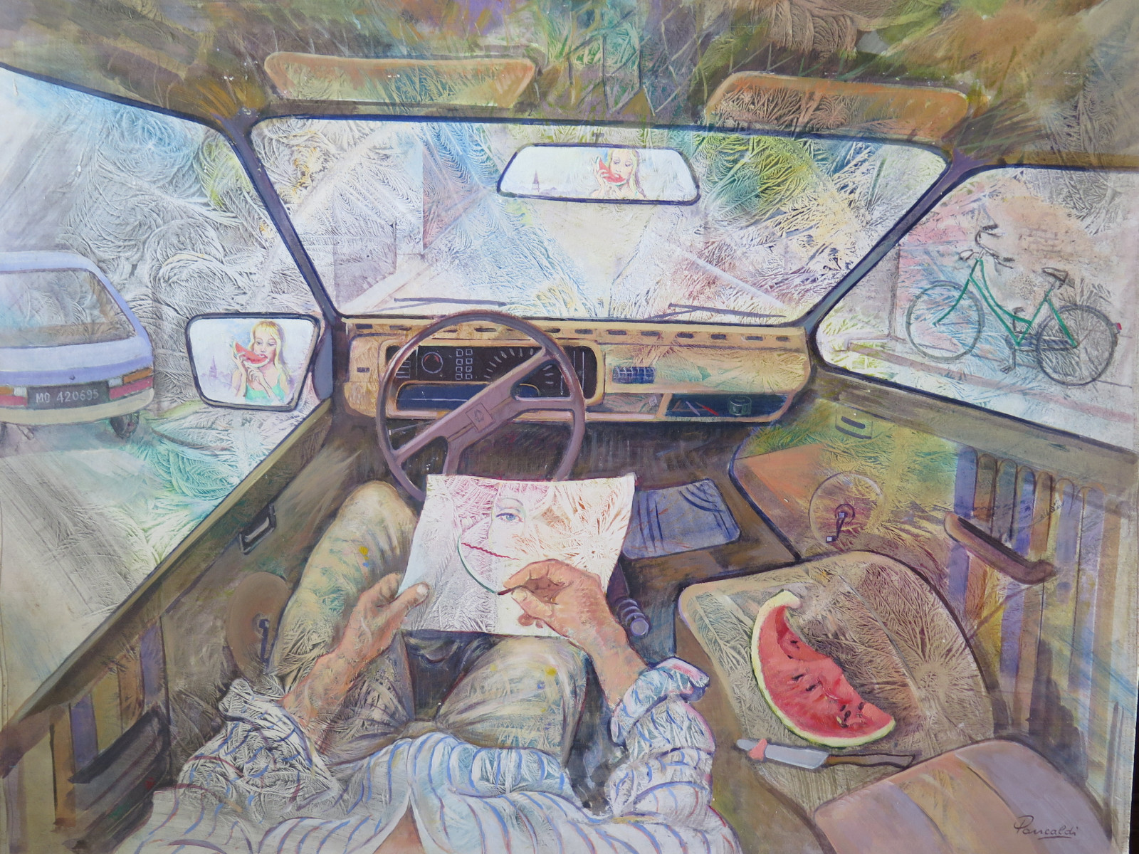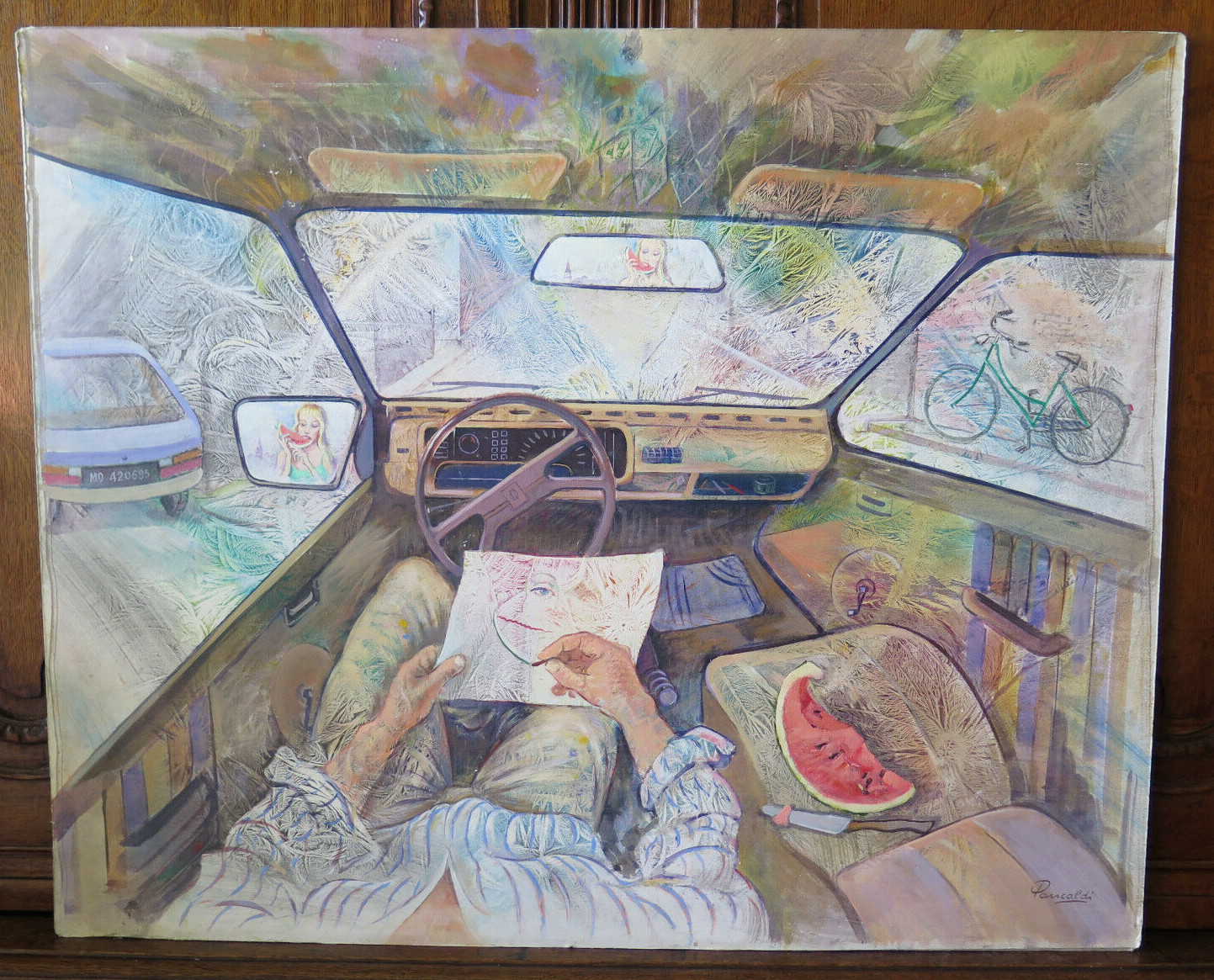 Quadro Vintage Interno Automobile Visto Dalla Prospettiva Del Guidatore P20 Ebay