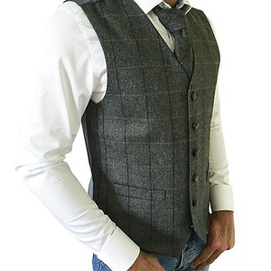 Da Uomo Misto Lana Tweed Quadri Grigio A Spina Di Pesce Gilet Taglie S 2xl Ebay