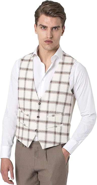 Hitch Man Gilet Uomo A Quadri A Quadri Beige Unico 50 Amazon It Abbigliamento