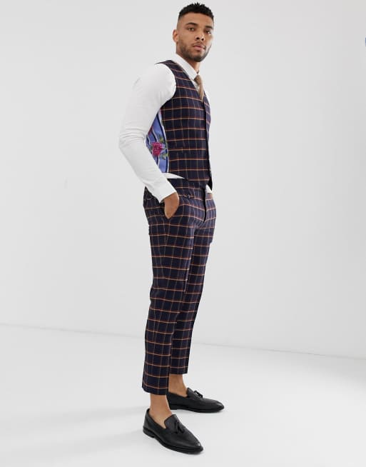Asos Design Wedding Gilet Da Abito Skinny A Quadri Blu Navy Asos
