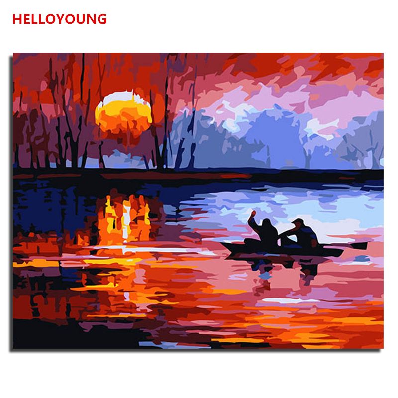 Acquista Disegno Da Colorare Di Diy Dai Numeri Dipingere Quadri Calligrafia Tela Il Disegno Soggiorno Numero Foresta Fiume Tramonto A 6 58 Dal Cnshoppingmall06 Dhgate Com