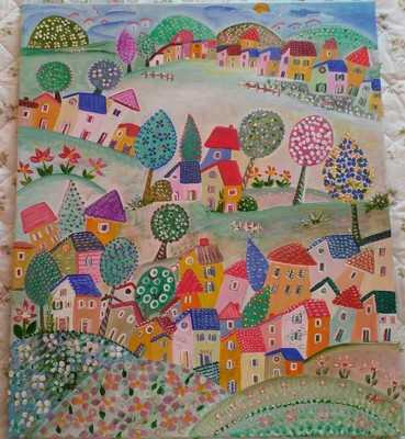 Quadro Stile Naif 60x70 Cm Allegro Paese Ebay