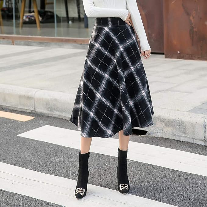 Gonna Da Donna Vintage A Quadri Gonna Lunga Invernale Svasata A Pieghe In Misto Lana Amazon It Abbigliamento
