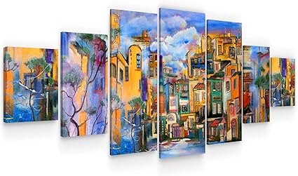 Startonight Grande Quadro Su Tela La Citta Dell Infanzia Grandi Quadri Moderni Astratti Stampe Soggiorno Xxl Di 7 Parti 100 X 240 Cm Amazon It Casa E Cucina