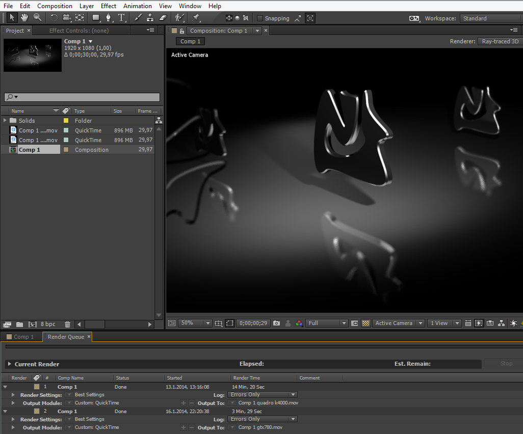Raytrace Render Test After Effects Cc Gtx 780 Vs Quadro K4000