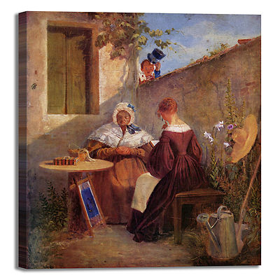 Spitzweg Lettori Nel Giardino Quadro Stampa Tela Dipinto Telaio Arredo Casa Ebay