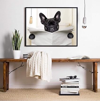 Poster Stampe Su Canvas Quadri Dyphb Cane Lettura Giornale Toilette Arte Per Pareti Stampe Su Tela Stampe Per Poster Pittura Per Pareti Bagno La Casa Arredamento Regalo Per Cani Senza Telaio Amazon It