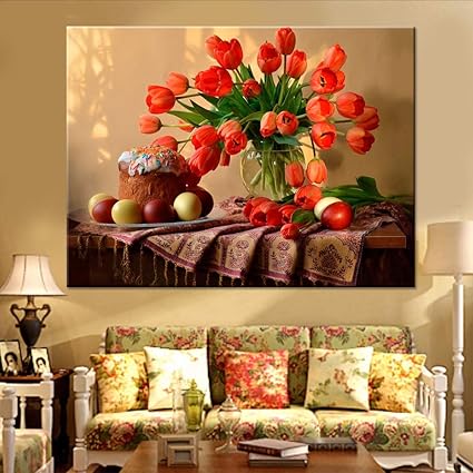 Nordic Home Decor Tulip Tela Pittura Di Fiori Poster E Stampe Quadri Moderni Parete Per Soggiorno Tela Pittura A Olio Di Arte Picture For Living Room Wall Picturesflower Poster Aliexpress