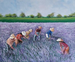 Quadro In Acrilico Su Tela Raccolta Della Lavanda 60 X 50 Ebay