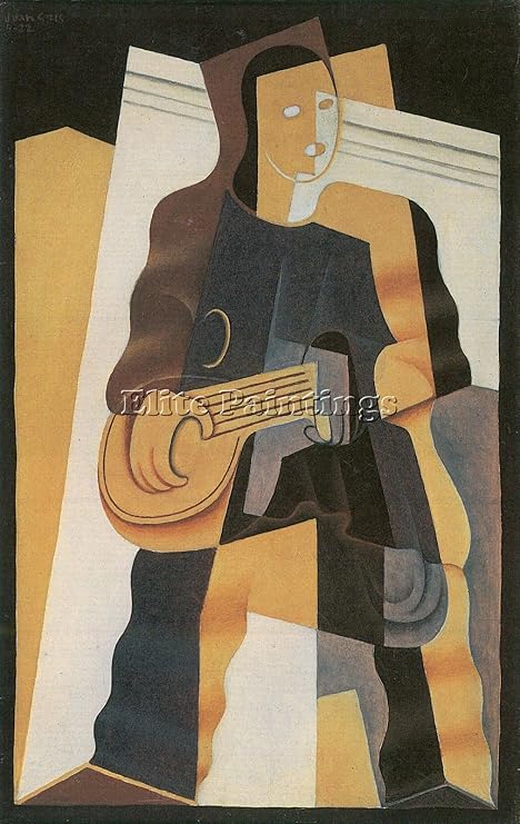 Pierrot 2 By Juan Gris Artista Pittura A Olio Su Tela Repro Wall Art Deco Qualita Museo 24x16inch Amazon It Casa E Cucina