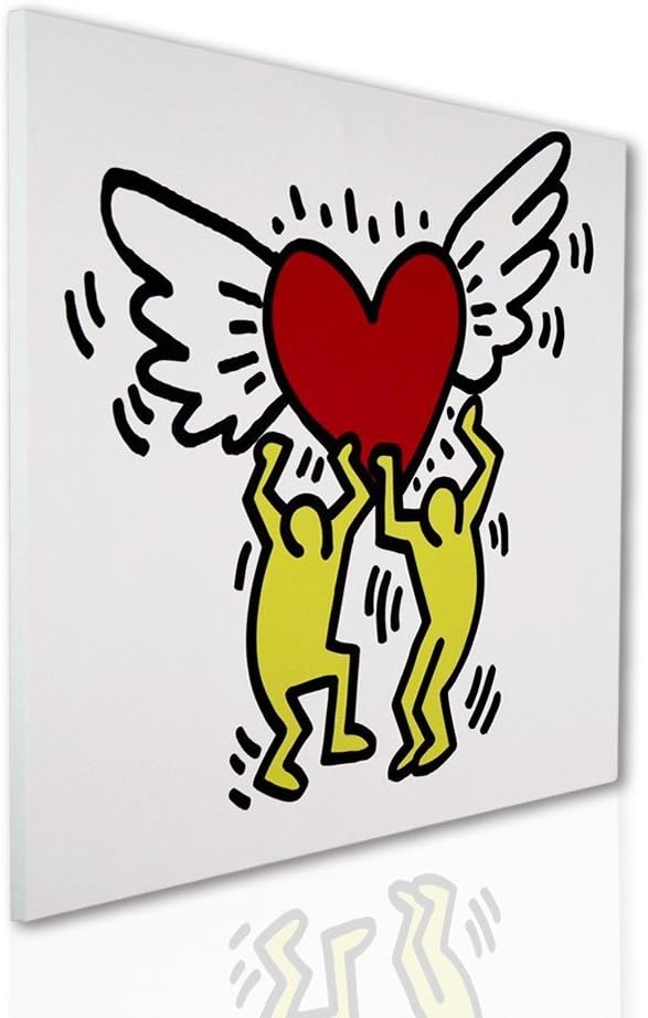 Quadro Moderno Cuore Con Ali Omaggio A Keith Haring Pronto Da Appendere Con Telaio In Legno Design Declea Amazon It Casa E Cucina