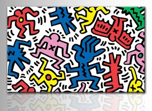 Haring riproduzioni artigianali di pregio e stampe su tela con vernice effetto pennellate del celebre pittore pop art.