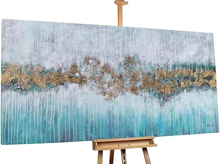 Kunstloft Stravagante Dipinto Ad Olio Fluss Der Ewigkeit In 200x100cm Tele Originali Manufatte Xxl Design Quadri Astratti Oro Turchese Quadro Da Parete In Olio Arte Moderna Murale Amazon It Casa