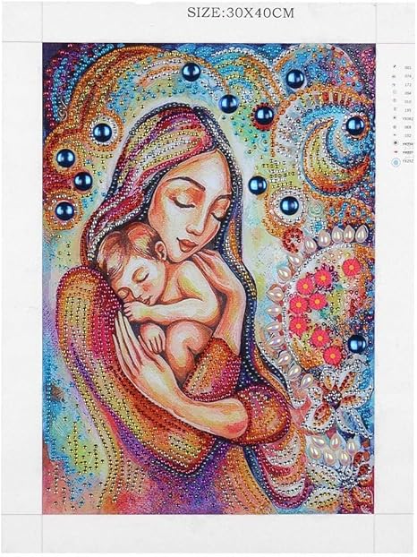 Winkey Quadro 5d Con Diamantini Per La Madre E Il Bambino 30 40 Cm Fai Da Te Kit Per Ricamo A Punto Croce Decorazione Per La Casa Con Strass Amazon It Casa