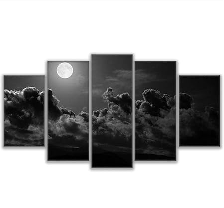 Sxkdyax Nessuna Cornice Quadro Dipinto Su Tela Quadro Artistico Astratto 5 Pezzi Ricerca La Luna E Rotonda Nuvola Notte Immagini Soggiorno Decorazione Domestica Amazon It Casa E Cucina
