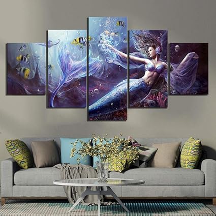 Diedfd Grande Arte Della Parete Della Tela Dipinti Di Arte Di Fantasia Leggenda Della Sirena Quadro Dipinto Decorazioni Per La Casa Stampa Poster Da Parete Arte Amazon It Casa E Cucina