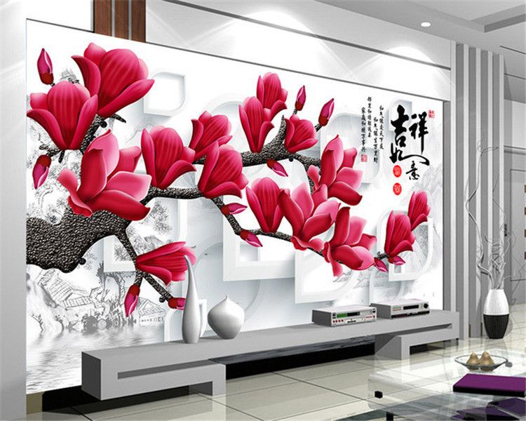 Acquista Carta Da Parati Personalizzata 3d Stereoscopico Stanza Rossa Dipinti Murali Magnolia Foto Carta Da Parati Carte Da Parati Decorazioni La Casa A 25 03 Dal Fumei66 Dhgate Com