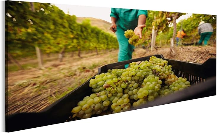 Islandburner Quadro Moderno Agricoltore Riempimento Cesto Di Uva Verde Nei Vigneti Durante La Vendemmia Donna Che Mette L Uva Nella Cassa Di Plasti Stampa Superiore Ntt Pano It Amazon It Casa E Cucina