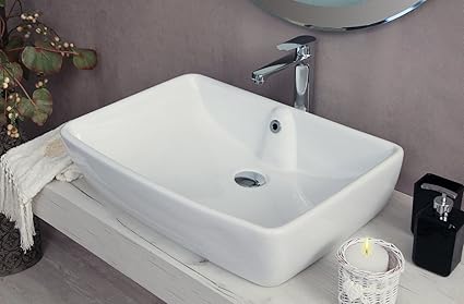 Eridanus Serie Monterosso Lavabo Di Ceramica Bianco Lusso Lavandino Lavello Lavamano Lavabo Da Appoggio Rettangolare Quadrato Bacinella Lavandino Lavello Per Bagno Casa Bidet Lavabo Con Troppopieno Amazon It Casa E Cucina