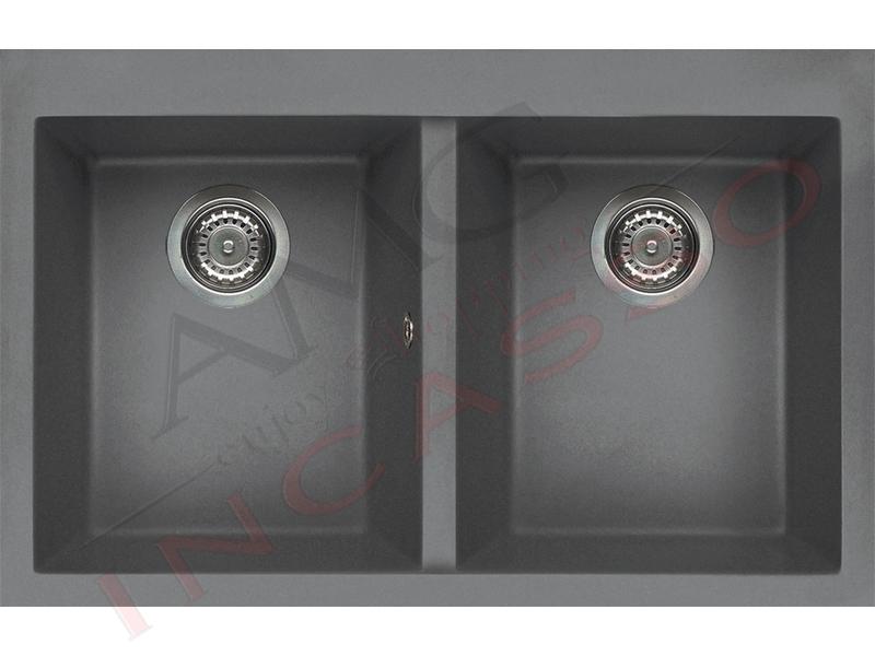 Vendita Elettrodomestici Roma Elleci Lkq35097bso Quadra 350 Sottotop Lavello 2 Vasche In Keratek Light Grey K97 Kera