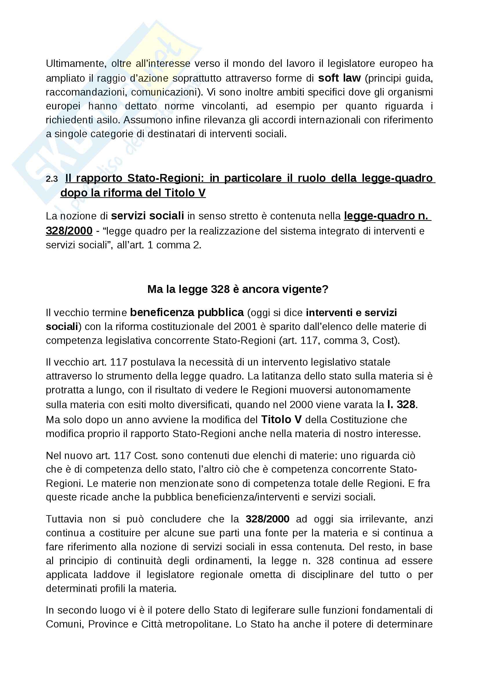 Legge Quadro Riassunto 328 2000 Docsity
