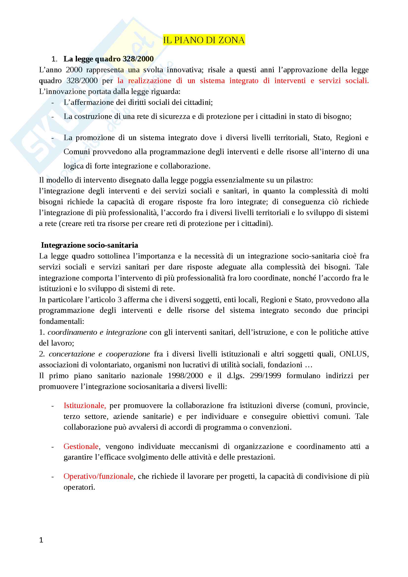 Piano Di Zona Legge 328 2000 Docsity