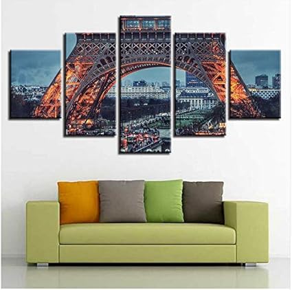 Lqwe Quadri Modulari Su Tela Decorazioni Per La Casa Camera Da Letto Quadro Hd Stampa 5 Pezzi Parigi Torre Di Ferro Citta Veduta Notturna Quadro Poster Quadro Amazon It Casa E Cucina