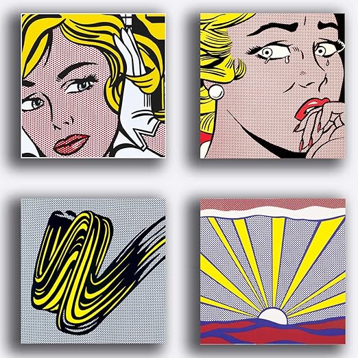 Quadri Moderni Stile Lichtenstein 4 Pezzi 40x40 Cm Pop Art Pop Art Stampa Su Tela Canvas Arredamento Arte Astratto Xxl Arredo Per Soggiorno Salotto Camera Da Letto Cucina Ufficio Bar Ristorante Amazon It Casa