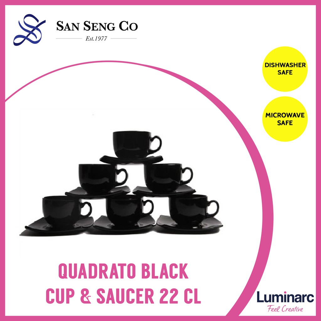 San Seng Luminarc Quadrato Black Cup Saucer 22 Cl Mug Simple Home Office Cup Ceramic Couple Coffee Tea Water Breakfast Shopee Singapore